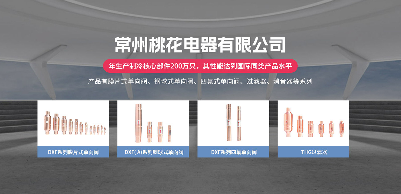 常州桃花電器有限公司地處中國(guó)長(zhǎng)江“金三角”之稱的上海至南京高速公路、城際高鐵、常州高新經(jīng)濟(jì)技術(shù)開(kāi)發(fā)區(qū)路段,交通便利、技術(shù)力量十分雄厚。它是集研究、開(kāi)發(fā)設(shè)計(jì)、制造和經(jīng)營(yíng)制冷核心部件的企業(yè),主要生產(chǎn)中央空調(diào)上使用的制冷部件。產(chǎn)品有膜片式單向閥、鋼球式單向閥、四氟式單向閥、過(guò)濾器、消音器等系列。年生產(chǎn)制冷核心部件200萬(wàn)只,其性能達(dá)到國(guó)際同類產(chǎn)品水平。 企業(yè)擁有先進(jìn)的科學(xué)技術(shù)、國(guó)際先進(jìn)的生產(chǎn)加工設(shè)備和精密的檢測(cè)儀器,并已通過(guò)ISO9001質(zhì)量體系及CE認(rèn)證,公司歷史悠久,2000年起,經(jīng)過(guò)長(zhǎng)期積累、沉淀,經(jīng)驗(yàn)豐富,從而保證了產(chǎn)品的高質(zhì)量、高性能、高耐用性。企業(yè)產(chǎn)品在國(guó)內(nèi)外市場(chǎng)具有較高的知名度,深受眾多中外品牌制冷客商的好評(píng)。主要客戶有約克、麥克維爾、美的、開(kāi)利、特靈、頓漢布什、清華同方、天加等.并出口北美、歐洲、東南亞等地區(qū)。 高品質(zhì)產(chǎn)品是企業(yè)的保證,周到服務(wù)是合作友誼的承諾,企業(yè)本著“求